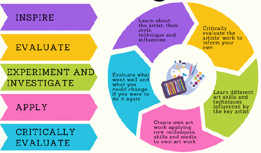 At Kingfisher CE Academy, we teach Art through a creative curriculum where children are hands on, exploring the skills and using different mediums through practical means. Children will be taught through a creative curriculum which helps build their resilience and self-confidence whilst allowing them to think creatively and imaginatively. They will be involved in the cycle of being inspired by artists and artwork before then reflecting on what they think of this art and how it could influence their own artwork. Once they have learnt the new skill or the new medium, children will then have the chance to apply what they have learnt to their own piece of artwork. The to apply what they have learnt to their own piece of artwork.